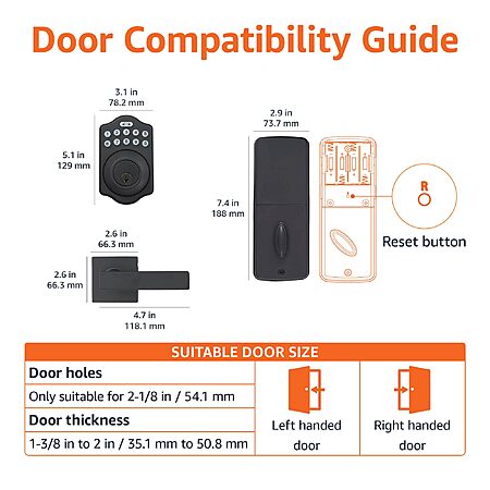 - Perfect fit: accommodates door thickness of 1-3/8 to 1-3/4 inches; door handle fits standard-size door hole (2-1/8-inch / 54mm); 6-way adjustable latch fits any 2-3/8-inch (60mm) or 2-3/4-inch (70mm) backset