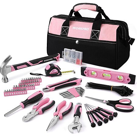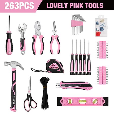$35.99*:WORKPRO Pink Tool Kit, 263-Piece Home Repair Set with Storage Bag - Pink Ribbon Edition at Amazon