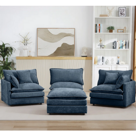102'' L Shape Modular Sectional Sofa, Chenille Couch, 3 Seaters With Movable Ottoman (blue or mint green) - $235.99