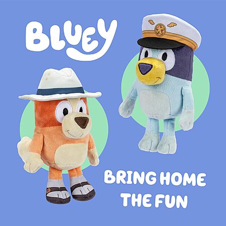 $7.99*:2-Pack Bluey Plush Stuffed Animals (16-23”, Captain and Holiday) at Amazon
