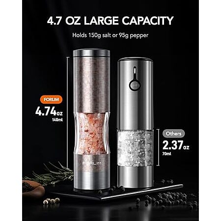 Model: FORLIM Salt and Pepper Grinder Set with Dust Cover, Manual Pepper Mill with Adjustable Coarseness, Brushed Stainless Steel, Ceramic grinding core, 4.7oz Large Capacity, Spice Grinder (Set/Silver)