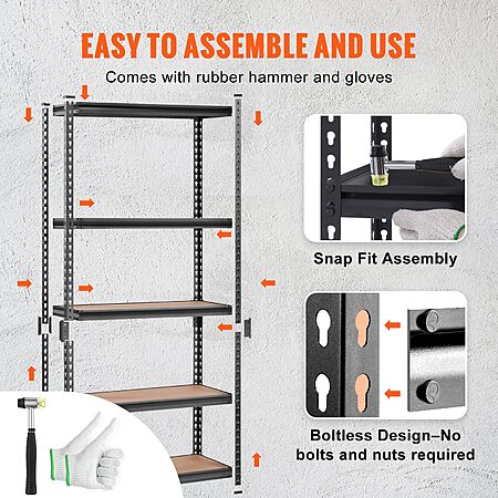- Setup. A Piece of Cake: It is a breeze to set up this metal shelf, and non-professionals can also complete it in a few minutes. Leave your toolbox in the drawer. With our press-to-assemble design, your only assembly buddies are a rubber hammer and gloves – included, of course.