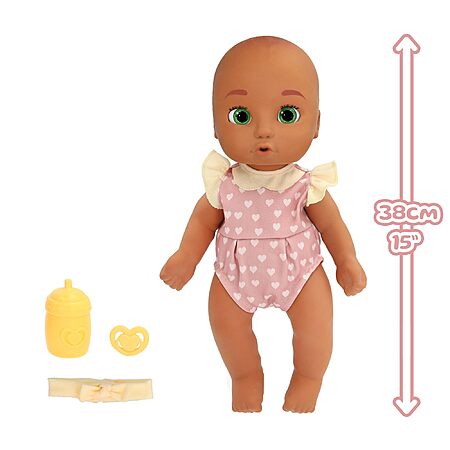 • Complete Accessory Set: Comes with a gender‑neutral outfit, matching headband, pacifier, and baby bottle—everything little caregivers need for hours of pretend play