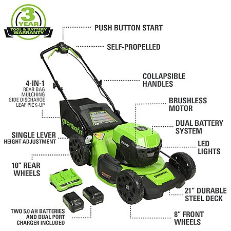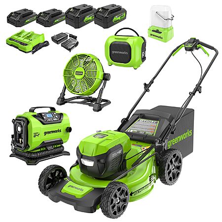 YMMV : Greenworks 48V (2x24V) 21" Brushless Self-Propelled Mower,500 Lumen Lantern,Fan,Mini Bluetooth Speaker,Inflator,Combo Kit,(2) 5Ah &(2) 2Ah Battery &2 Charger $699