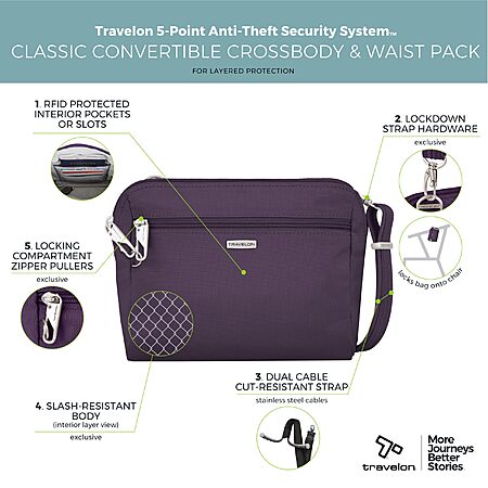 Travelon Anti-Theft Classic Convertible Crossbody & Waist Pack (Purple) $18.60 + Free Shipping w/ Prime or $35+