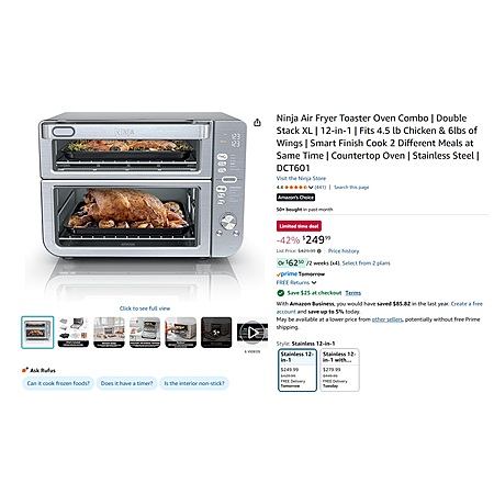 Ninja Air Fryer Toaster Oven Combo | Double Stack XL | 12-in-1 | Stainless Steel | DCT601 $224.99 w/coupon (Save $25 at checkout)