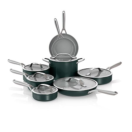 Ninja Ceramic Pro 14-Piece Cookware Set, Non-Stick Pots & Pans Set with Glass Lids, Nontoxic, PTFE Free, Ceramic Coated, Oven Safe, British Racing Green CW39011GN $299.99
