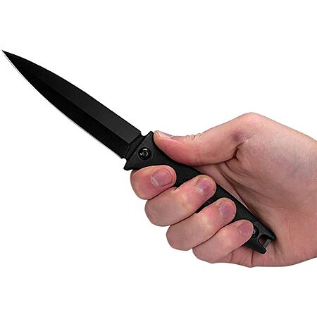 - SPEAR POINT PLAIN EDGE BLADE: Made from 8Cr13MoV steel that offers improved edge retention, strength and hardness. Black-oxide finish helps to hide scratches and gives the blade an industrial look.