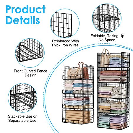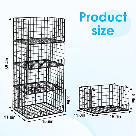ur 4-tier closet storage organizer is made of thickened high quality iron wire, which is strong and durable, with good resistance to pressure and abrasion, ensuring no deformation for long time use. It won't be fragile and easy to bend or damage like plastic or cloth storage baskets. Perfect Size in 4 -Tier is 11.8 D*15.9W*35.3H inch, Sigle one size is 11.8D*15.9W*8.8H inch