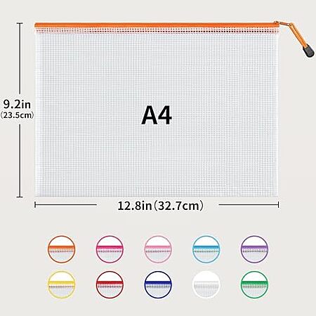 JarlinkDirect via Amazon[amazon.com] has 24-Pack JARLINK Zipper Mesh A4 Document Pouch (Various Colors) for $11.98. Shipping is free with Prime or on $35+ orders.