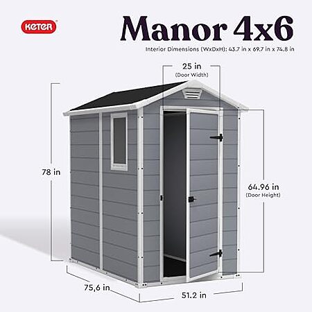 [AC] $372.53 | Keter Manor 4' x 6' Resin Storage Shed (Gray/White) + 10% Back w/ Prime Visa Card ($335.28 after cashback) at Amazon