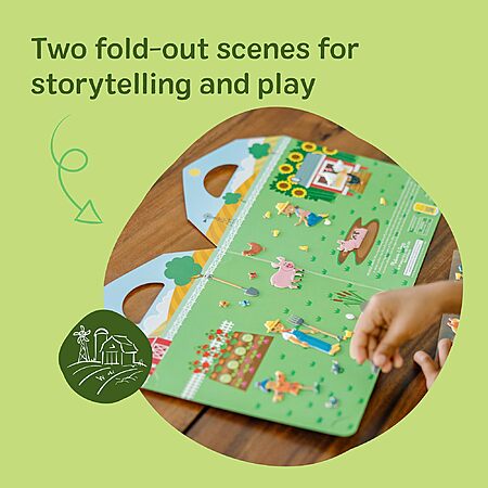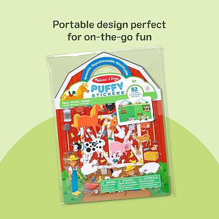 - Farm-Themed Puffy Sticker Book: Includes 52 reusable cute stickers with farm animals, tractors, and more, plus double sided glossy scenes featuring a barn and barnyard for imaginative pretend play
