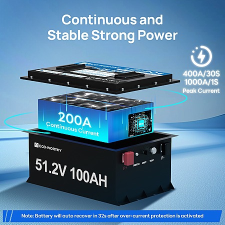 ECO-WORTHY 51.2V 100Ah LiFePO4 Battery with Bluetooth & LCD Final Price $671.90+ Free Shipping