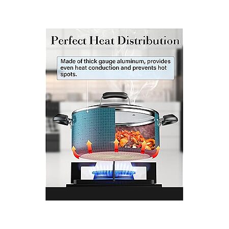 - Good Heat Conduction: The nonstick pots and pans cooking set is made of thick-gauge, durable aluminum that provides quick and even heat conduction, preventing hot spots