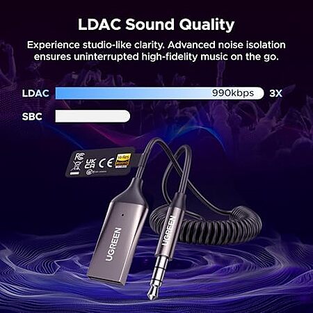 UGREEN GROUP LIMITED via Amazon [amazon.com] has UGREEN Aux to Bluetooth 6.0 Car Adapter with LDAC for $15.99.