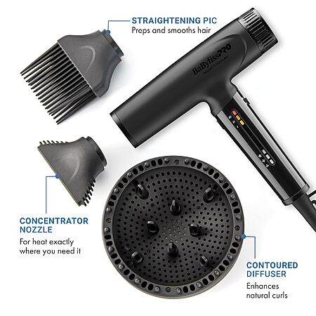 BaBylissPRO Nano Titanium Professional Light Ionic Hair Dryer (Matte Black) for