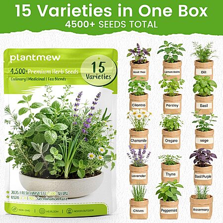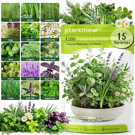 $8.26*:PLANTMEW Herb Seeds 15-Pack – 4,500+ Non-GMO Heirloom Seeds for Planting at Amazon