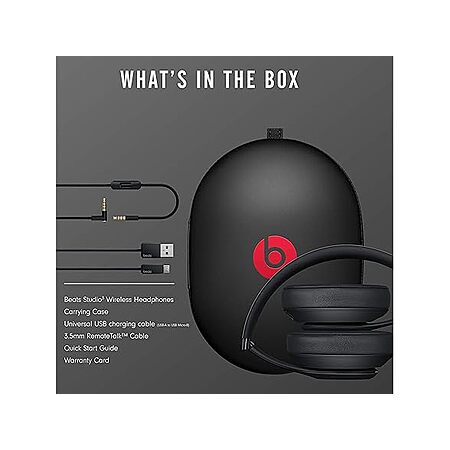 - What's in the box: Beats Studio3 Wireless headphones, Carrying case, 3.5mm RemoteTalk cable, Universal USB charging cable, Quick Start Guide, Warranty Card (USB power adapter sold separately)