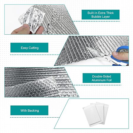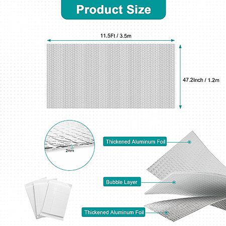 - Can cut the bubble reflective aluminum foil into any shape or size you need, use self adhesive pads we provide to install double reflective insulation roll properly with ease