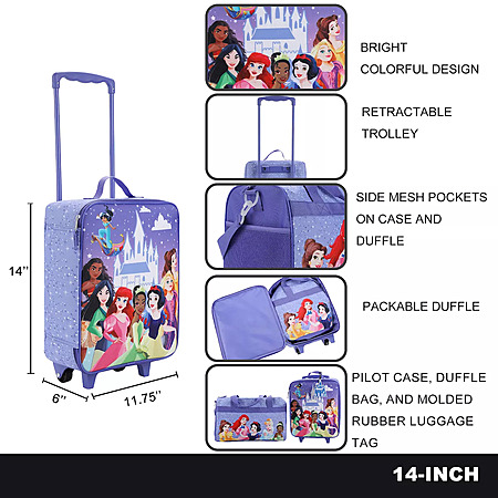 Disney Princess 3-Piece Travel Set With Pilot Case & Luggage Tag $29.99