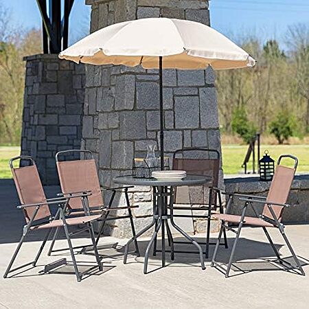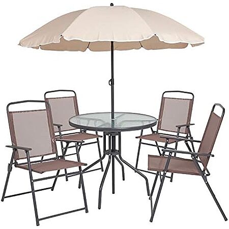 $75.79* | 6-Pc EMMA + OLIVER Patio Garden Set w/ Umbrella Table & 4 Folding Chairs (Brown) at Amazon