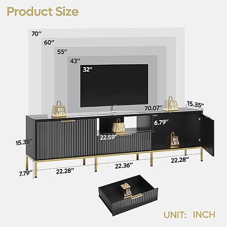 70" Bestier TV Stand w/ LED Lights for TVs Up to 80" (Black/Gold or White/Gold) $99.99 + Free Shipping