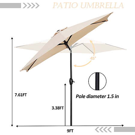 9-Ft Ainfox Waterproof UV Sunshade Canopy Patio Umbrella w/ Push Button Tilt and Crank (Khaki) $29.99 & More + Free S&H w/ Walmart+ or on $35+