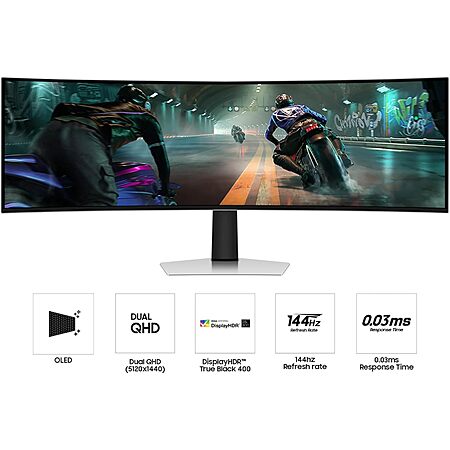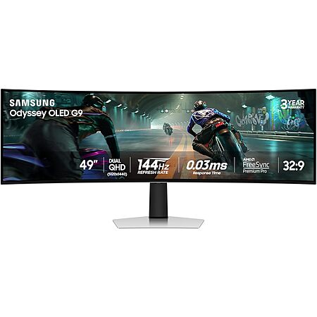 Amazon [amazon.com] has 49″ SAMSUNG Odyssey OLED G9 Dual QHD QD-OLED G-Sync Compatible Curved Gaming Monitor, 144Hz, 0.03ms (G91SD) for $799.99.
