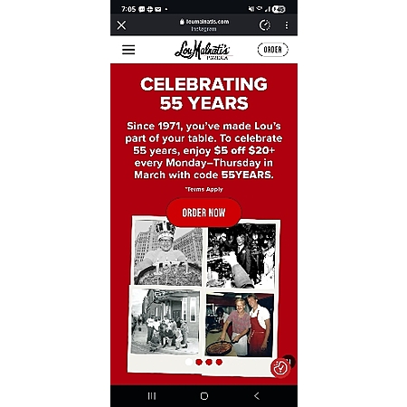 They also have a promo for $5 off $20 March Mondays to Thursdays CODE 55YEARS.