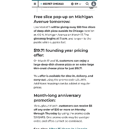 Chicagoland - Lou Malnati's 55th Anniv $19.71 Lg pizza  3/17, 3/18 & 550 free slices at Lou's Mich Ave. 3/17