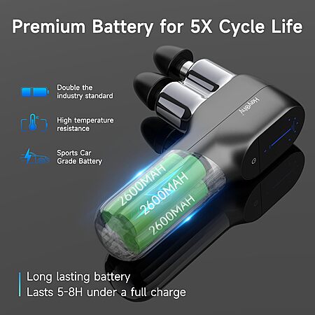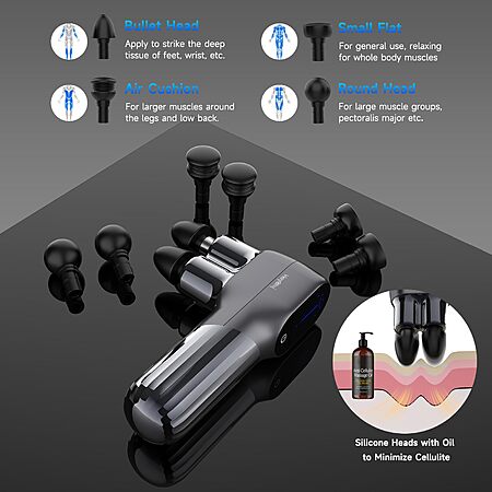 HEYCHY Mini Massage Gun - Deep Tissue Percussion Massager with Dual Heads, 5 Speed Levels & 4 Attachments, Portable Handheld Muscle Recovery Gun $39.99