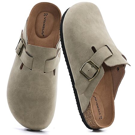 VIVASUN Clogs for Women and Men Cork Footbed Sandals Comfort Slip On Potato Shoes with Arch Support Suede Clogs,Grey $13.99