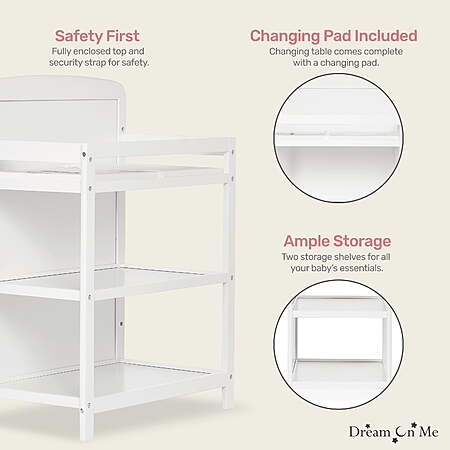 The Anna 3-In-1 Full Size Crib & Changing Table Combo is a stylish and functional investment that keeps pace with your child's changing needs. Convert it from a crib to a toddler bed, and then a daybed (Toddler Guardrail/Stabilizer sold separately) as your child grows.The changing table with two storage shelves adds to the utility. The changing table is equipped with a custom fit 1" changing pad. There are two open storage shelves beneath the table, allowing you to keep baby essentials handy.The Anna features a sleek and modern design with clean lines. You can choose from six elegant finishes- Black, Cherry, Espresso, Natural, White & Storm Grey and match it effortlessly with any nursery theme! All Dream On Me cribs are tested to ensure all applicable ASTM, JPMA & CPSC standards are met. This Anna comes with a stationary (non-drop side) rail system for added safety. All tools for assembly are included, conversion kit sold separately. Choose any Dream On Me non-toxic, Greenguard certified standard crib mattress for the perfect fit. Maximum weight limit is 50 lbs.