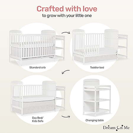 Dream On Me Anna 4-in-1 Full Size Crib & Changing Table Combo (White) for
