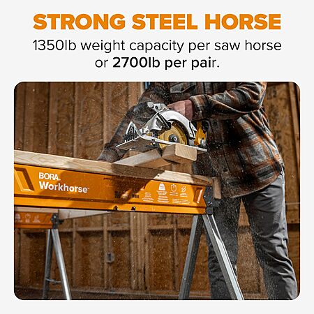 Heavy-duty 1350 lb. Weight Capacity Per Sawhorses.