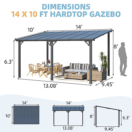 10' x 14' AECOJOY Hardtop Aluminum Gazebo (Grey)