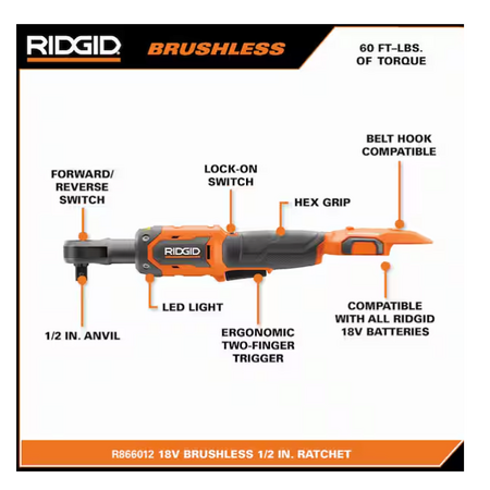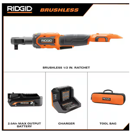 RIDGID 18V Brushless Cordless 1/2 in. Ratchet Kit with 2.0 Ah Battery and Charger $133 at HomeDepot