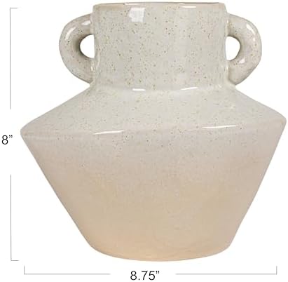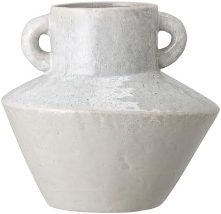 $10.99 | Bloomingville Round Stoneware Vase with Reactive Glaze Finish and Vertical Handles, Light Grey at Amazon