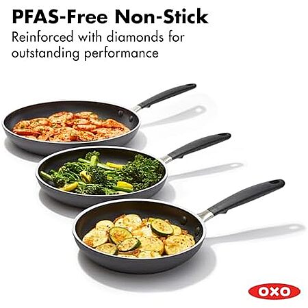 $99.99 | OXO Non-Stick Every Day Frying Pan Set, Black, 8”, 10” & 12” at Amazon