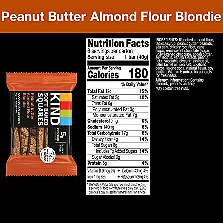 8.5-Oz KIND Soft Baked Squares (Peanut Butter Almond Flour Blondie) for $6.15 -