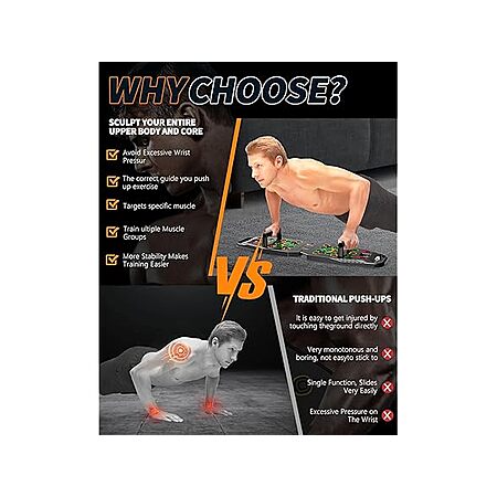 - 【Non-slip & Steady】 Non-slip handles help distribute force evenly, thereby reducing stress and joint strain on the athlete's wrists and elbows. The bottom of the push-up board carries 22 anti-slip pads, can help stabilize you body while you exercise.
