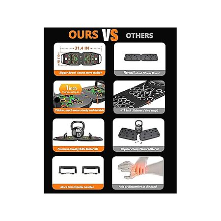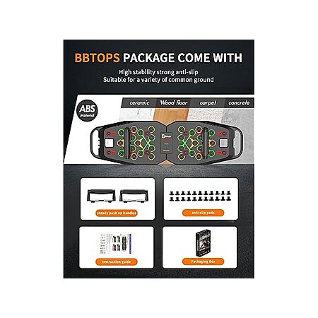 - 【High Quality Push UP Board】 The Bbtops push up board is made from durable ABS plastic, high durability and rigidity and outstanding resistance to impact, abrasion, and can be folded 180 degrees. Withstands weights up to 660 pounds of force.