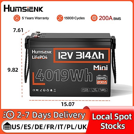 Humsienk 12V 314Ah LiFePO4 Battery 4019Wh 200A BMS Upgraded Version $242 + Free Shipping