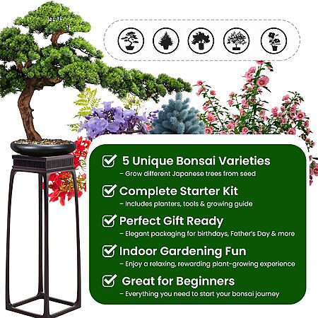 KML Trading Co. via Amazon.com has Bonsai Tree Kit for Beginners - 5 Unique Japanese Bonsai Seeds, DIY Indoor Gardening Crafts for Adults | Valentine's, Mother's Day & Birthday Gifts for Women and Men | Complete Starter Kit with Tools on sale for $15.95.
