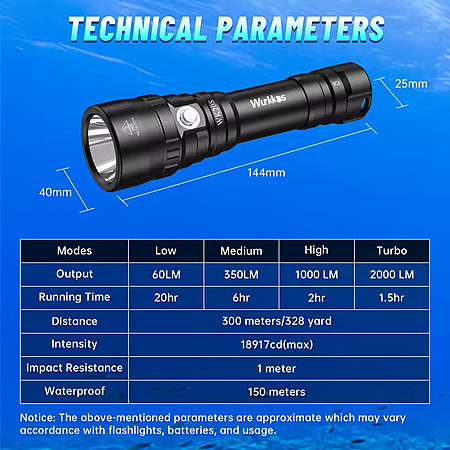- IPX8 waterproof, rated to 150 meters