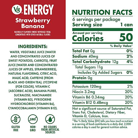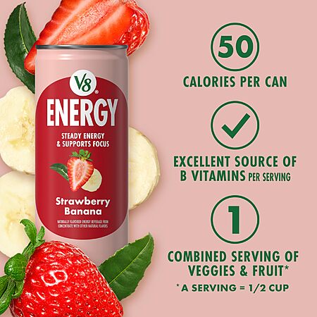 6-Pack 8-Fl Oz V8 +ENERGY Strawberry Banana Energy Drink $2.98 w/ S&S + Free Shipping w/ Prime or on $35+