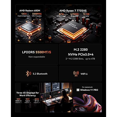 ACEMAGIC Matrix Mini M1 PC: Ryzen 7 7735HS, 24GB LPDDR5, 1TB SSD, Win 11 Pro $403.19