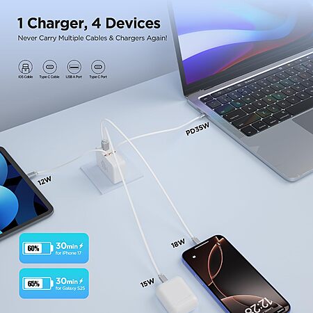 FlexTurtle 4-in-1 Retractable Wall Charger w/ Lighting Cable, USB-C Cable, USB-C & USB-A Ports $15.59 + Free Shipping w/ Prime or on $35+