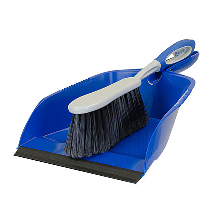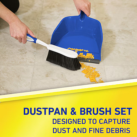 - Flagged fibers on brush and soft lip on dustpan ensure dust and particles are easily captured