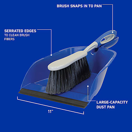 - Brush snaps into pan for convenient storage